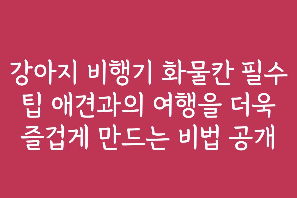 키워드: 강아지 비행기, 화물칸, 팁, 여행, 애견, 준비, 조건, 후기, 방법, 비용, 절차