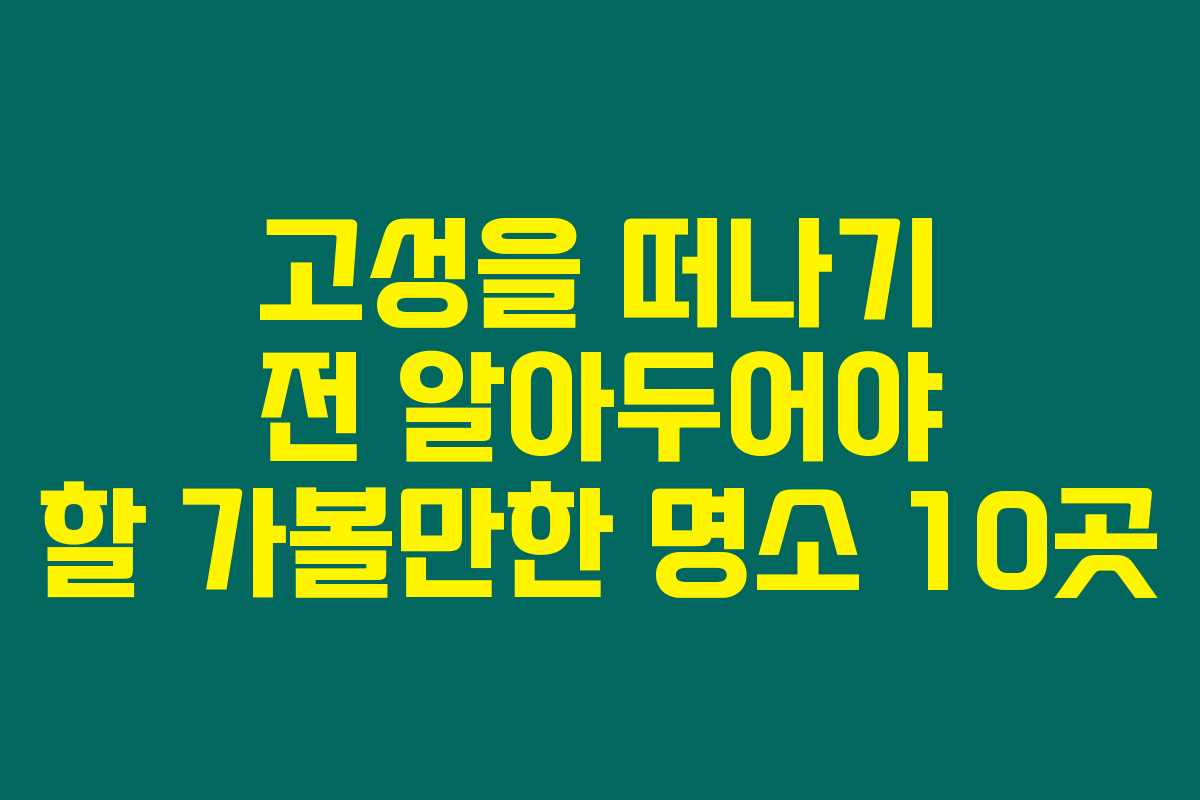 이상으로, 고성의 매력적인 명소를 소개해드렸어요. 자연과 역사를 동시에 경험할 수 있는 고성을 방문해 보시는 건 어떨까요? 여행의 즐거움이 여러분을 기다리고 있으니 꼭 가보세요!