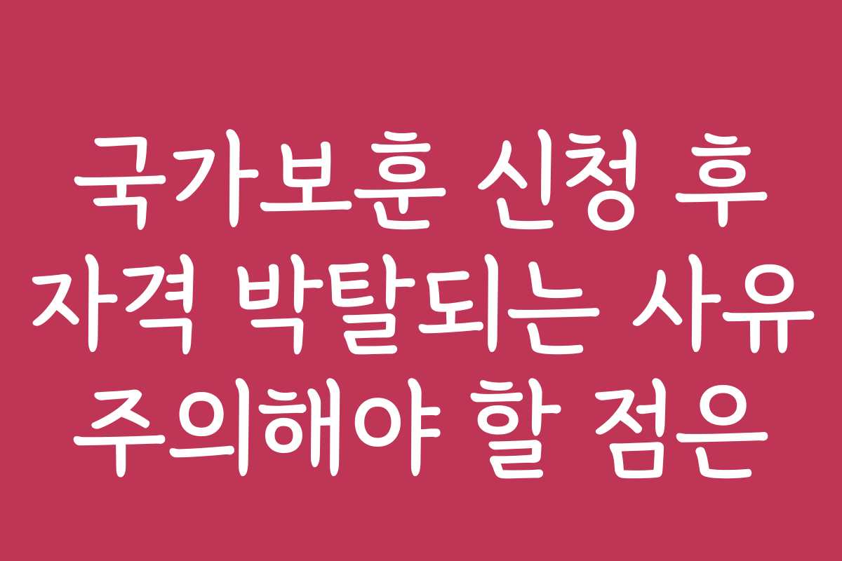 국가보훈 신청 후 자격 박탈은 신청者에게 큰 충격을 줄 수 있는 상황입니다. 많은 사람들이 보훈 혜택을 신청하지만, 예상치 못한 이유로 자격이 박탈되는 경우가 잦습니다. 국가보훈 신청 후 자격 박탈되는 사유를 미리 알고 대비하는 것이 중요합니다.