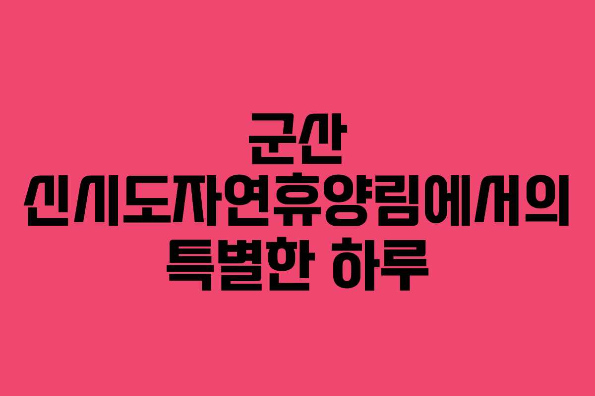 자연 속에서의 힐링과 가족과의 소중한 시간을 보내고 싶다면, 신시도자연휴양림을 추천합니다. 이곳에서의 특별한 경험은 기억에 오래 남을 것입니다.