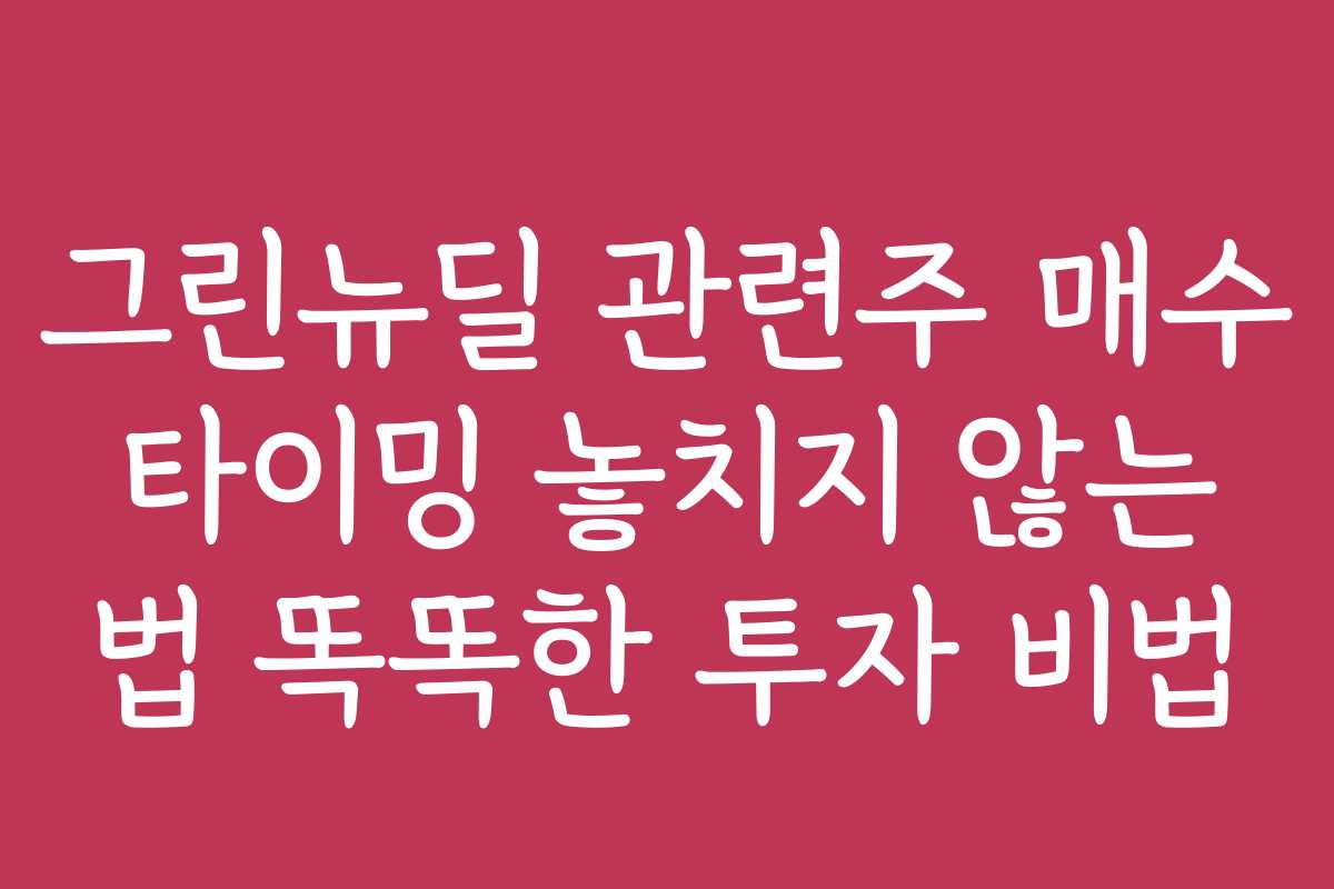 그린뉴딜 관련주에 투자하고 싶은데 매수 타이밍이 고민이라면 주목하세요. 안정적인 수익을 추구하면서도 손실을 최소화할 수 있는 방법이 있습니다. 이번 글에서는 그린뉴딜 관련주 매수 타이밍을 놓치지 않는 법과 똑똑한 투자 비법을 공유하겠습니다.