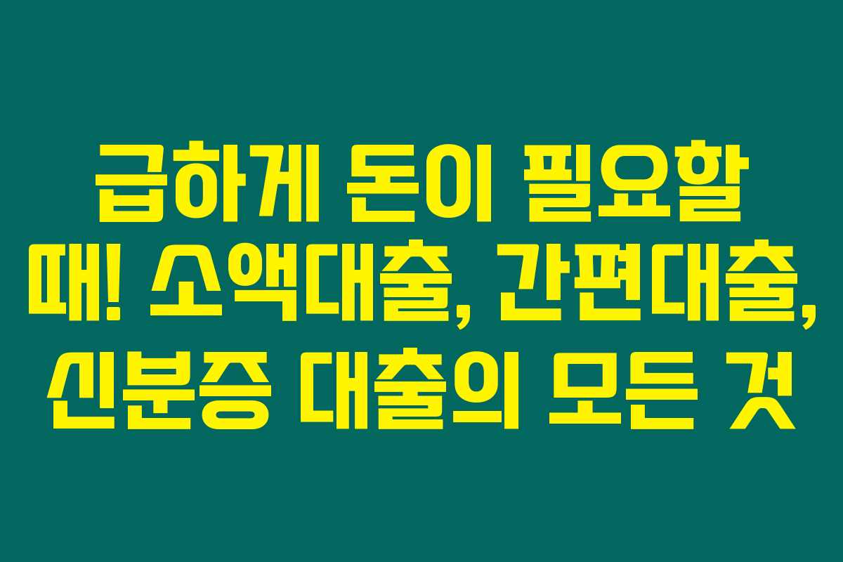 급한 돈이 필요할 때, 소액대출과 관련된 다양한 정보를 활용해보세요. 다양한 즉시대출 옵션이 있으니, 서두르지 마시고 차근차근 검토하는 것이 좋답니다.