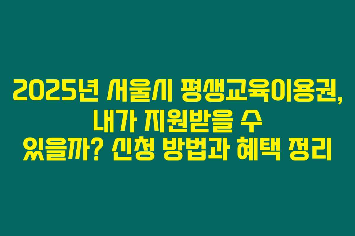 제가 직접 알아본 바로는, 2025년 서울시에서 제공하는 평생교육이용권은 교육 기회를 놓친 시민들에게 큰 도움이 될 수 있는 제도랍니다. 이 제도는 특히 사회·경제적 여건으로 인해 교육의 기회가 부족한 분들에게 평생교육 참여의 길을 열어주는 중요한 프로그램이에요. 아래를 읽어보시면 상세한 지원 대상, 신청 방법, 지원 금액, 그리고 문의처까지 모든 정보를 알차게 정리해두었으니 참고해 보세요!