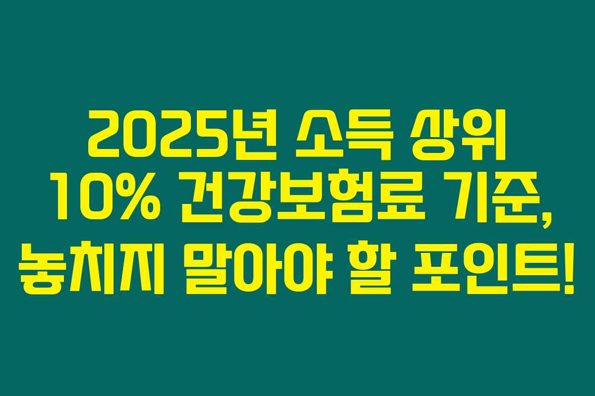 2025년 소득 상위 10% 건강보험료 기준, 놓치지 말아야 할 포인트!