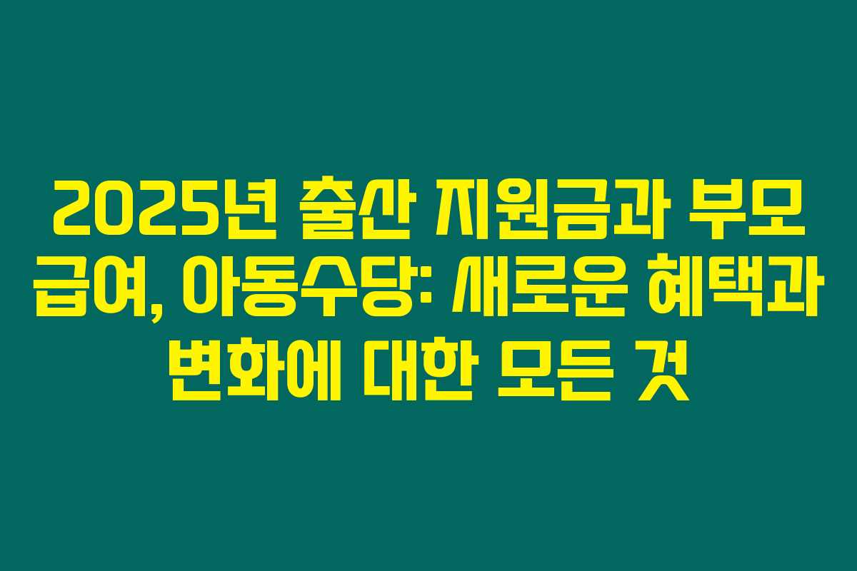 제가 직접 알아본 바로는 2025년에 정부가 제공할 출산 지원금, 부모 급여 및 아동수당에 대한 여러 변화와 혜택이 기대됩니다. 이 글을 통해 아래를 읽어보시면, 부모님들께서 누릴 수 있는 다양한 지원 내용에 대한 정보와 신청 방법을 확인하실 수 있습니다. 변화하는 정책에 대한 정확한 정보를 알고 활용하는 것이 중요하니, 놓치지 마세요!