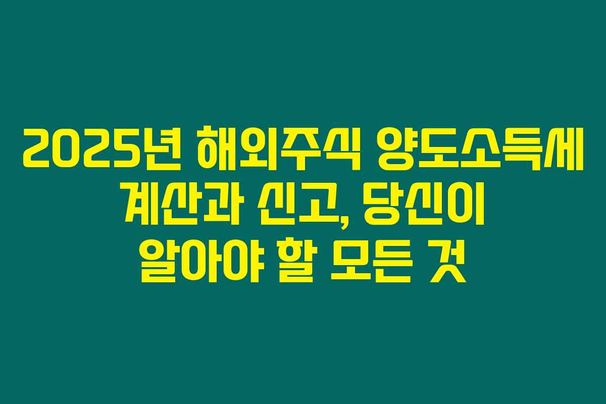 2025년 해외주식 양도소득세는 앞으로의 투자에 중요한 포인트가 될 것입니다. 이 정보를 잘 관리하고 활용하여 유익한 투자 경험을 쌓으실 수 있기를 바랍니다.
