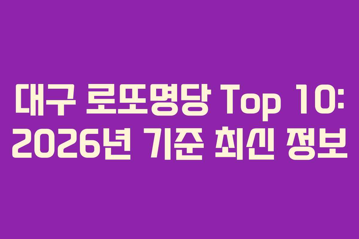 이번 포스팅에서는 2026년 기준으로 대구의 로또명당 Top 10을 소개합니다. 대구는 로또 1등 당첨자가 많이 배출된 지역으로, 이곳에서 판매되는 로또는 많은 사람들에게 희망의 상징이 되고 있습니다. 로또를 구매하고자 하는 분들은 이 명당들을 참고해 보시기 바랍니다.