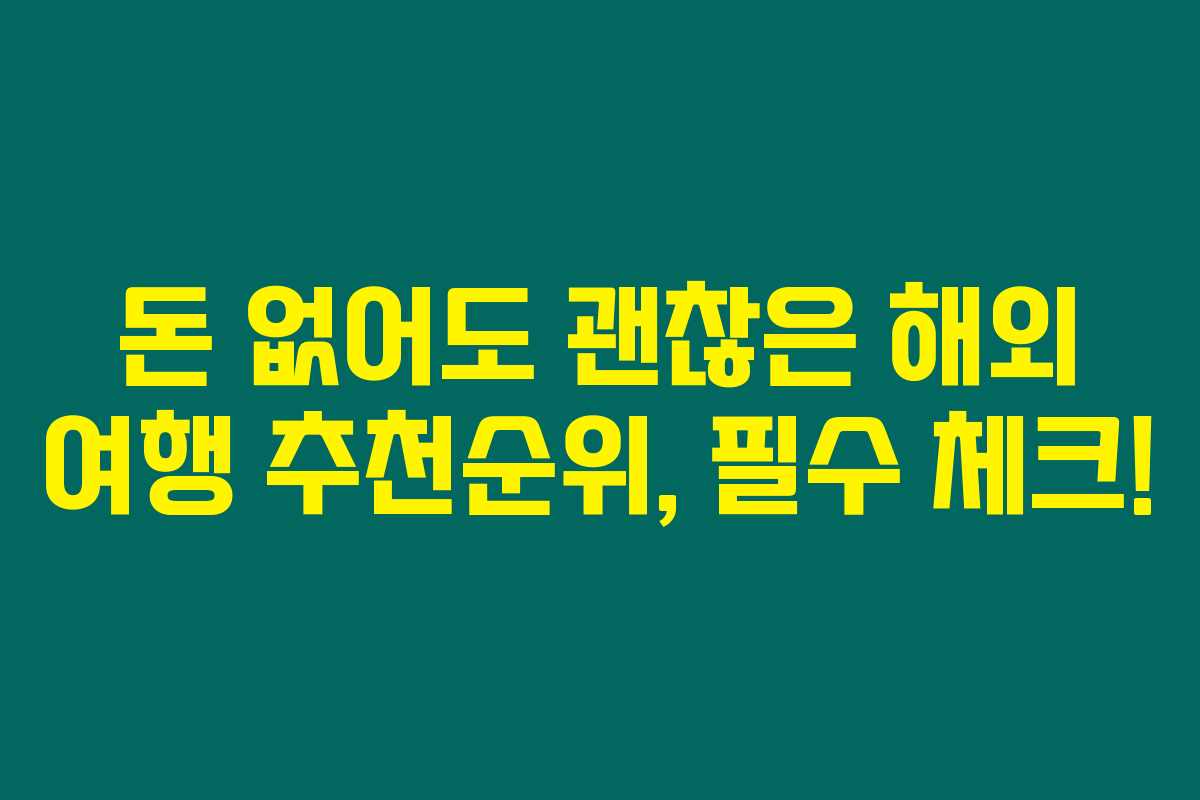 제가 알아본 바로는, 여행은 삶의 중요한 일부분으로 여겨지고 있습니다. 많은 사람들이 휴가를 떠나고 싶지만, 금전적인 이유로 해외여행을 망설이는 경우가 많지요. 이럴 때는 어디로 가야 할지 고민하는 분들이 많을 텐데요. 그래서 제가 직접 리서치한 결과, 돈이 없어도 괜찮은 해외 여행지를 추천드립니다. 아래를 읽어보시면 가성비 좋은 여행지를 통해 알차고 즐거운 여행 계획을 세울 수 있을 거예요!