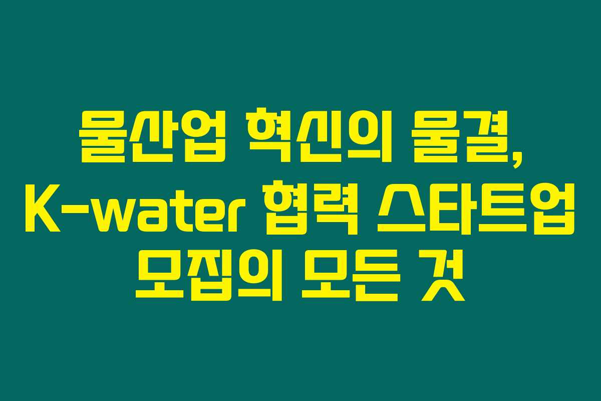 K-water 물산업 협력 스타트업 모집은 물 산업의 혁신을 통해 새롭게 탄생하는 기회를 제공합니다. 스타트업과 K-water의 협력이 서로가 성장하는 데 큰 기여를 할 것이라 믿습니다. 지금 바로 도전해보세요!