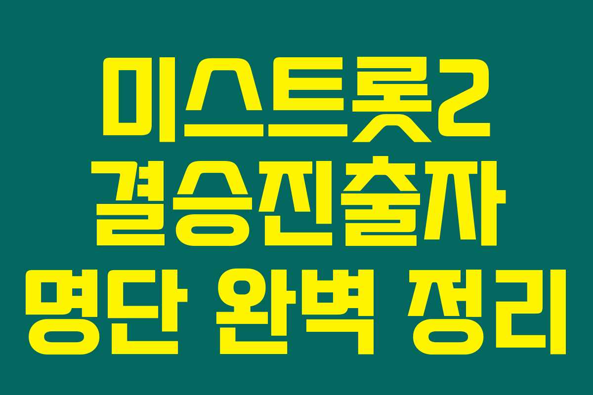 미스트롯2는 우리나라에서 큰 인기를 끌고 있는 트로트 경연 프로그램이에요. 특히 이번 결승 진출자들의 명단이 공개되면서 많은 시청자들의 기대감을 높이고 있죠. 결승 진출자들은 어떤 분들이며 어떻게 경쟁을 치렀는지 궁금하지 않나요? 아래를 읽어보시면 결승진출자 명단과 각 참가자의 성과를 상세히 알 수 있어요.