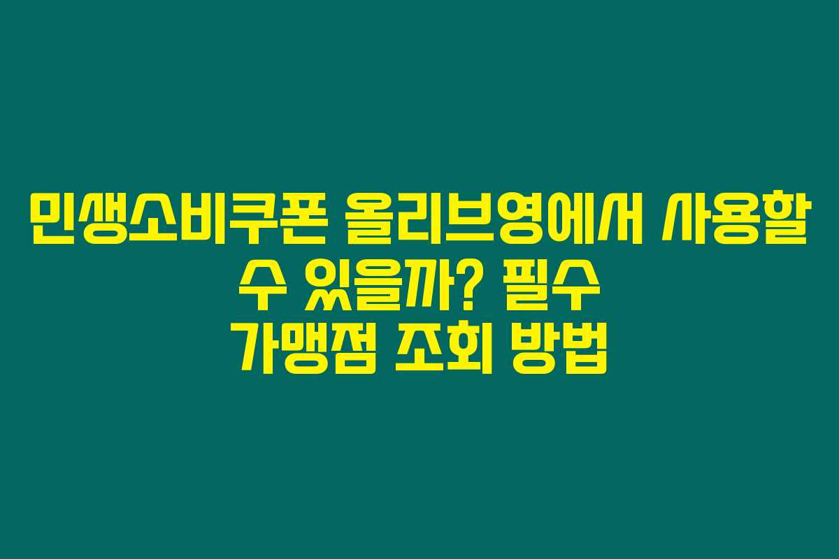민생소비쿠폰을 발급받았는데 자주 가는 올리브영 매장에서 사용할 수 있을까 고민하는 분들이 많으시죠? 결론부터 말씀드리면 올리브영의 일부 매장에서만 민생소비쿠폰을 사용할 수 있어요. 그러니까 헛걸음하지 않도록 미리 확인하는 것이 중요하답니다. 아래를 읽어보시면 올리브영에서 민생소비쿠폰을 사용하는 데 필요한 정보와 가맹점 조회 방법에 대해 자세히 알아볼 수 있어요.