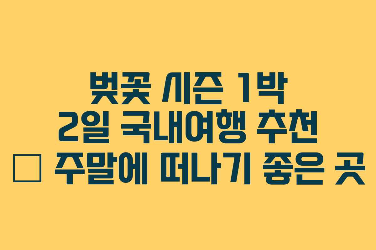 벚꽃이 만개하는 봄, 짧지만 특별한 여행을 떠나고 싶은 마음이 커지는 시기입니다. 바쁜 일상 속에서도 1박 2일 일정으로 벚꽃의 절정을 만끽할 수 있는 국내 여행지를 소개합니다. 주말을 이용해 벚꽃이 아름답게 피어나는 장소로 떠나, 봄의 설렘을 온전히 느껴보세요. 서울 근교부터 지방의 명소까지, 벚꽃과 함께하는 최고의 여행 코스를 엄선했습니다.