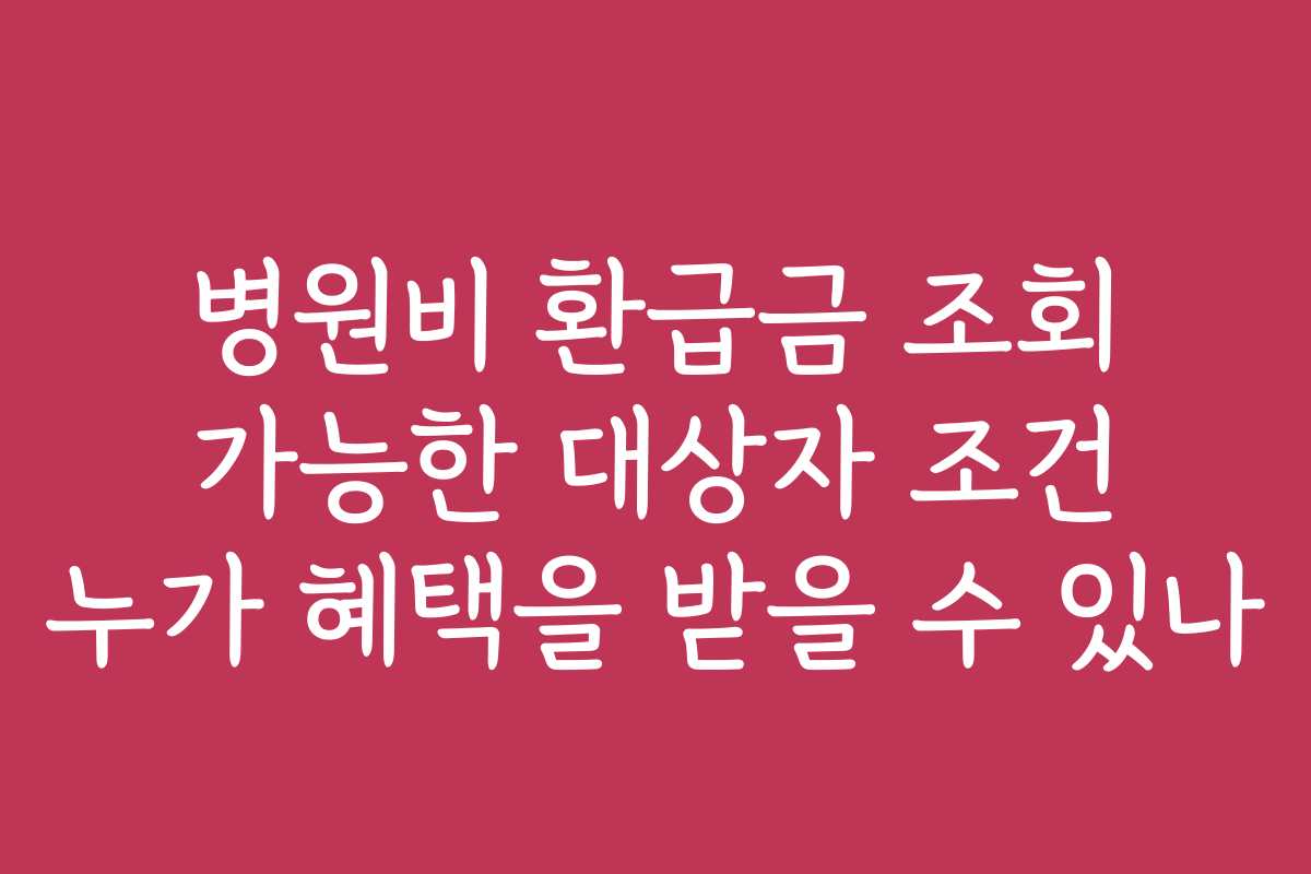 병원비 환급금 조회 가능한 대상자 조건 누가 혜택을 받을 수 있나