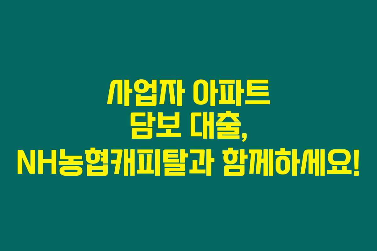 제가 직접 경험해본 결과로는, 사업자 아파트 담보 대출에 대한 상담은 금전적으로 매우 중요한 결정이에요. NH농협캐피탈의 사업자 아파트 담보 대출은 적절한 금리와 유연한 조건으로 많은 개인사업자들에게 희망을 제공합니다. 아래를 읽어보시면, NH농협캐피탈의 대출 서비스에 대한 구체적인 정보를 얻을 수 있을 거예요.