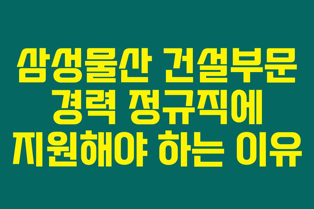 삼성물산은 세계적인 프로젝트에서 다양한 건설 경험을 쌓을 수 있는 기회를 제공합니다. 이 경험은 여러분의 경력에 큰 자산이 될 것입니다.