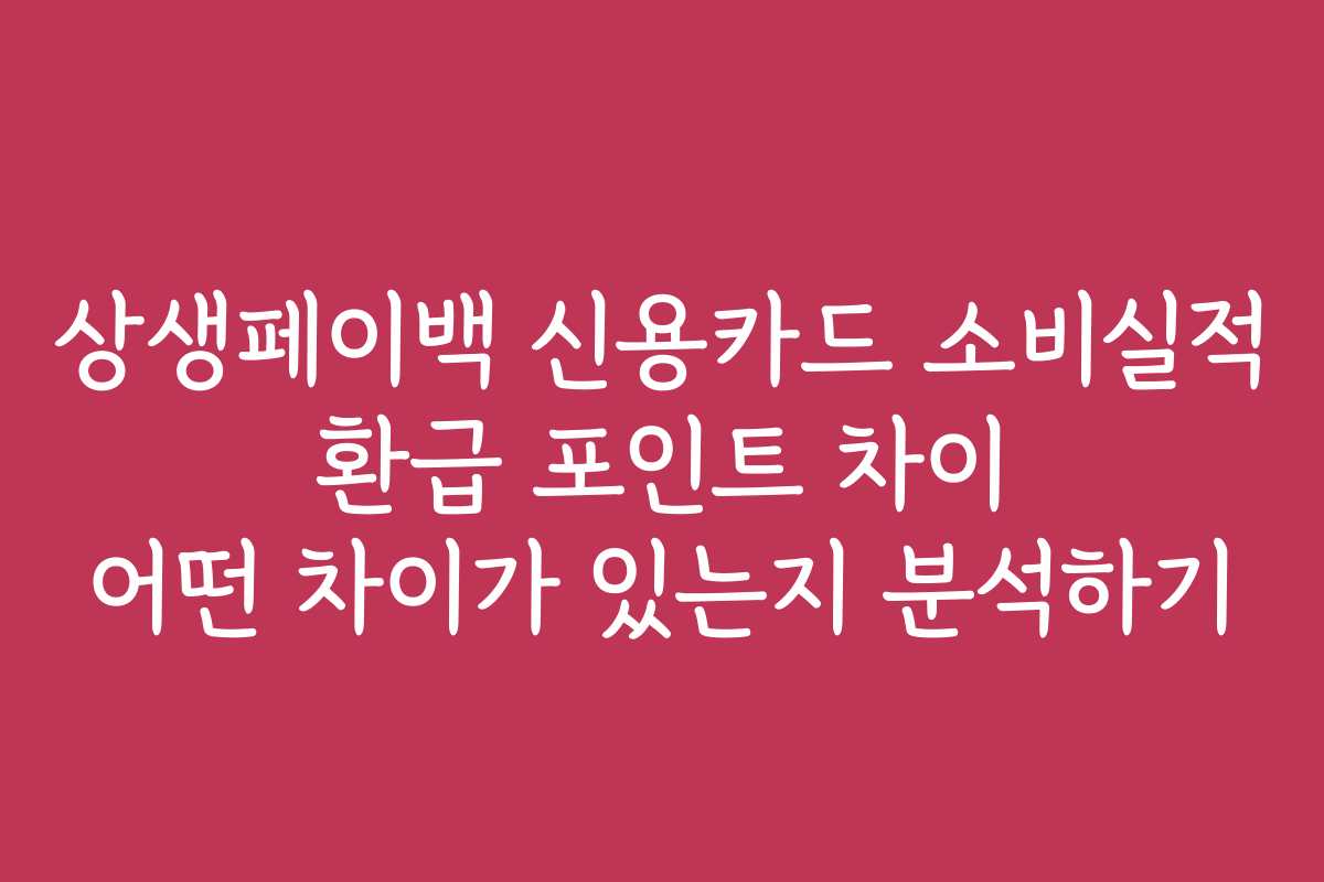 상생페이백 신용카드 소비실적 환급 포인트 차이 어떤 차이가 있는지 분석하기