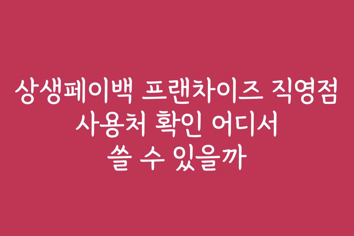 상생페이백 프랜차이즈 직영점을 이용하고 싶은데, 어디서 사용 가능한지 궁금하신가요? 이 글에서는 상생페이백 직영점의 사용처를 자세히 안내해 드리겠습니다. 다양한 가맹점과 서비스를 통해 인센티브를 얻고, 합리적인 소비를 할 수 있는 방법을 알아봅시다.