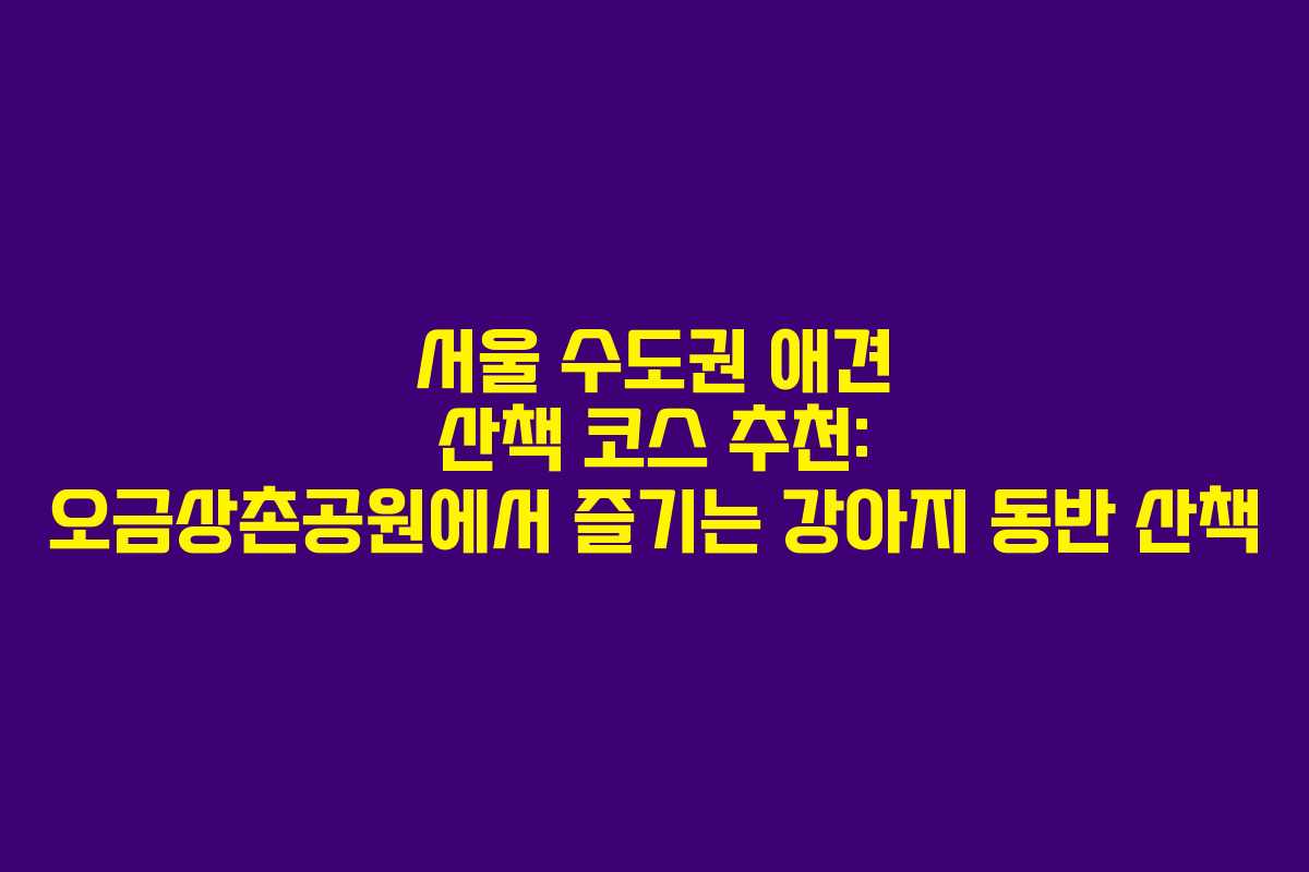 애견과 함께 산책하기 좋은 공간을 찾는 것은 많은 반려인들에게 중요한 일입니다. 서울 수도권에는 다양한 산책 코스가 있지만, 사람들로 붐비지 않고 조용하게 산책할 수 있는 장소는 더욱 귀중합니다. 오늘은 오금상촌공원을 소개하며, 이곳의 매력과 강아지와 함께하는 산책의 즐거움을 전해드리겠습니다.