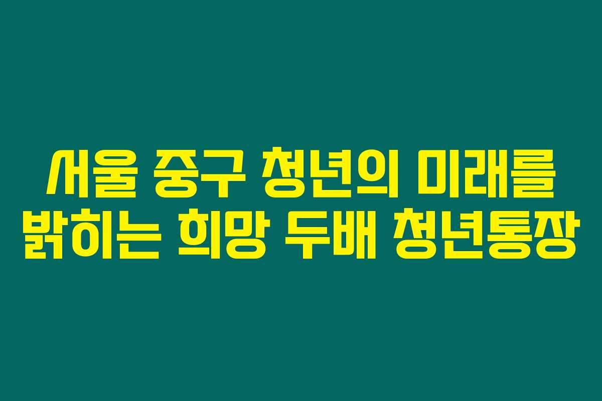 제가 직접 체크해본 바로는 서울 중구에서 추진하는 희망 두배 청년통장은 청년들에게 실질적인 경제적 지원을 제공하는 훌륭한 프로그램이에요. 이 통장에 가입하면 매달 적립금의 100%를 추가로 지원받을 수 있기 때문에, 장기적으로 안정된 재정 계획을 세울 수 있는 기회입니다. 만약 이 프로그램에 관심이 있다면, 아래를 읽어보시면 자세한 내용을 확인하실 수 있을 거에요.