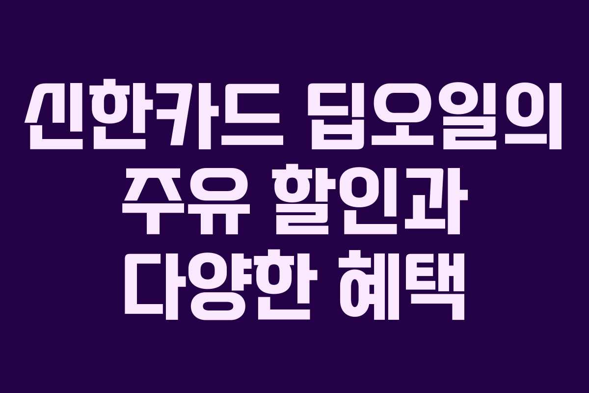 신한카드 딥오일은 주유 할인, 차량 정비 및 주차 할인, 생활업종 할인, 영화 할인 등 다양한 혜택을 제공합니다.