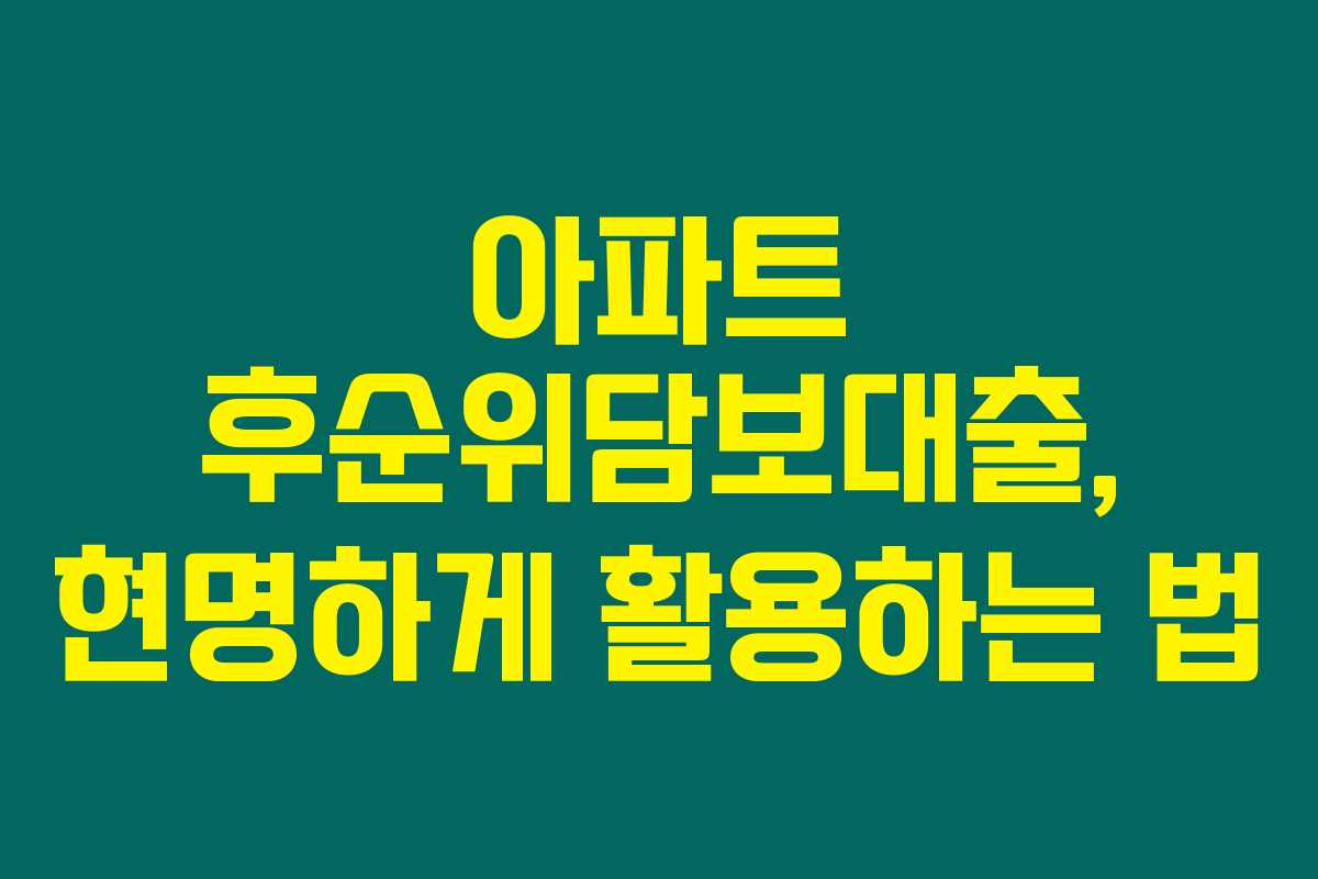 아파트 후순위담보대출, 현명하게 활용하는 법