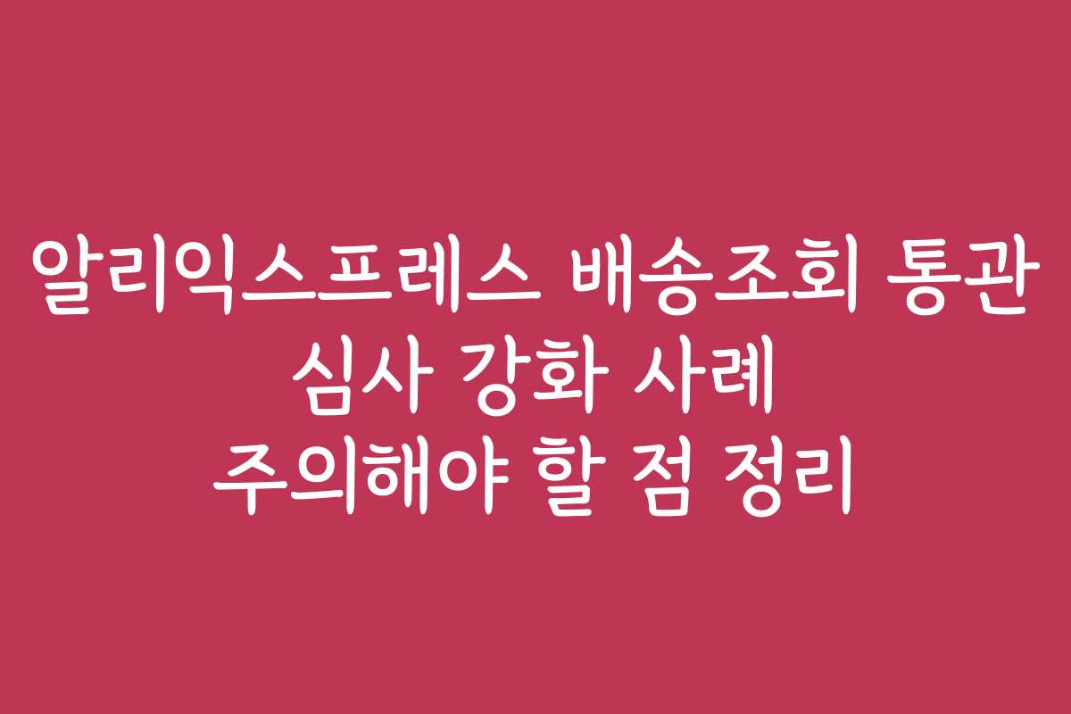 요즘 많은 사람들이 해외 직구를 통해 상품을 구매하고 있습니다. 그중에서 알리익스프레스가 인기인데요, 하지만 배송조회나 통관 관련하여 문제가 발생하는 경우가 많습니다. 이번 포스팅에서는 알리익스프레스 배송조회와 통관 심사 강화 사례, 주의해야 할 점을 정리해보겠습니다.
