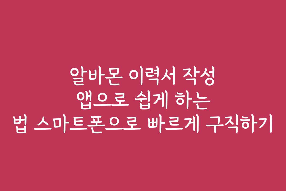 알바몬 이력서 작성 앱으로 쉽게 하는 법 스마트폰으로 빠르게 구직하기