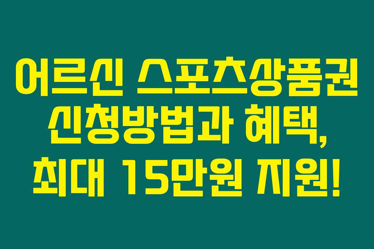 어르신 스포츠상품권을 통해 건강한 노후를 계획해보세요! 이 상품권으로 다양한 스포츠 시설을 이용하며 삶의 질을 높여보세요. 놓치지 말고 신청하세요!