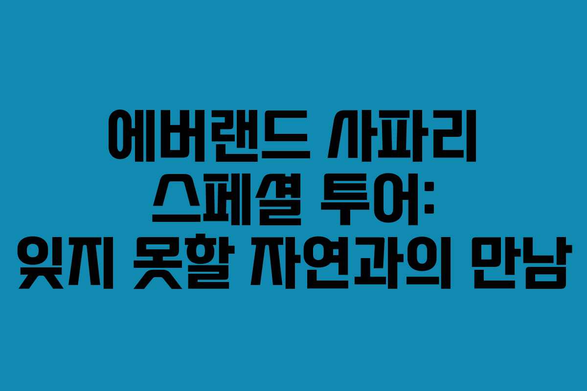 에버랜드 사파리 스페셜 투어는 많은 이들에게 특별한 경험을 선사하며, 자연과 동물에 대한 새로운 시각을 제공합니다. 여러분도 이 기회를 통해 소중한 기억을 만들어 보시기 바랍니다.