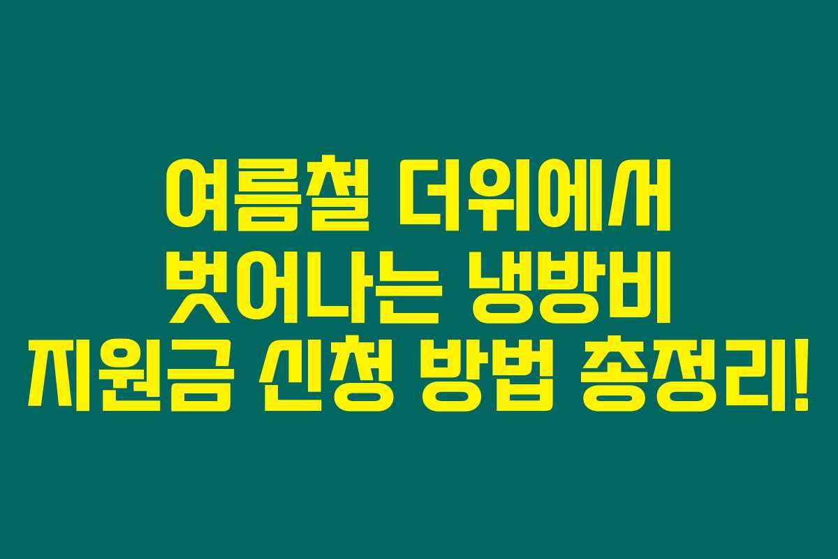 여름 더위가 찾아오면 냉방비 부담이 크게 늘어납니다. 이럴 때 필요한 냉방비 지원금이 여러분의 경제적 부담을 덜어줄 수 있어요. 아래를 읽어보시면 지원금 신청 기간과 방법에 대한 완벽 가이드를 통해 적시에 지원금을 신청할 수 있는 정보를 확인할 수 있습니다. 더위를 피하고 좀 더 여유로운 여름을 보내세요!