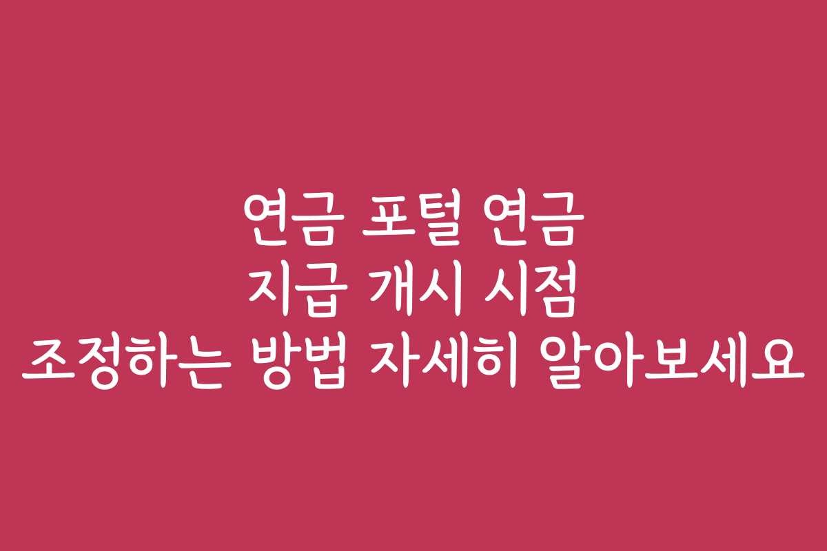 연금 포털 연금 지급 개시 시점 조정의 정의 및 중요성