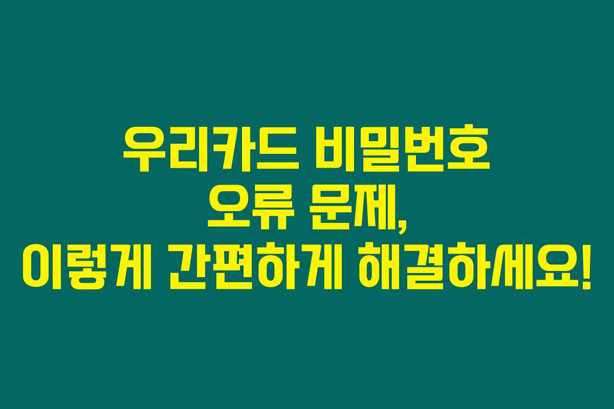 우리카드를 사용하는 대부분의 분들이 경험하는 비밀번호 오류는 정말 불편할 수 있어요. 잘못 입력하거나 잊어버리면 카드 사용에 지장이 생기죠. 하지만 걱정 마세요! 아래를 읽어보시면 간단한 절차로 문제를 해결하는 법을 알려드릴게요.