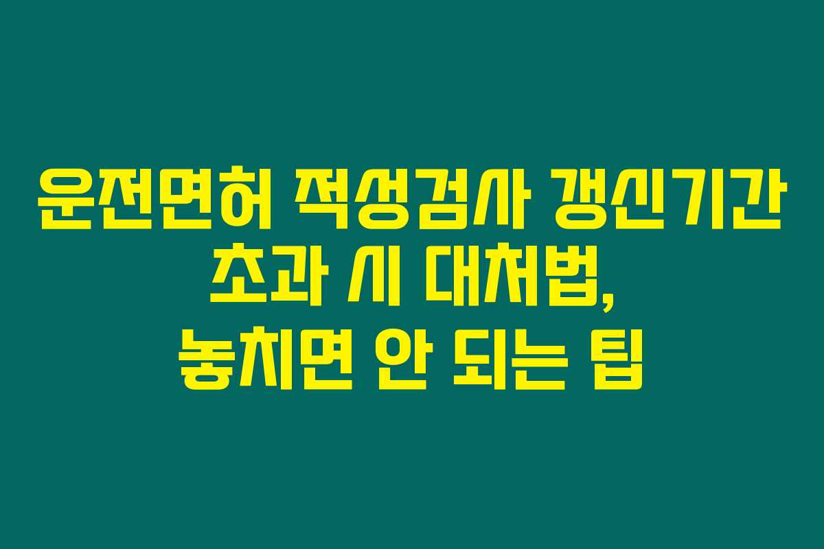 운전면허 적성검사를 갱신해야 하는데 기간을 놓치셨다면 정말 걱정이 되실 거에요. 운전면허 적성검사는 모든 운전자가 반드시 지켜야 할 규칙이죠. 이 글에서는 운전면허 적성검사 갱신기간과 초과 시 대처법에 대해 알아보도록 할게요.