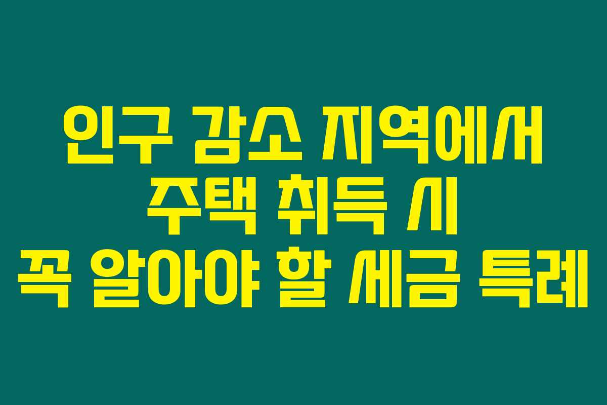 - 인구 감소 지역의 주택 취득 시 중요한 사항들