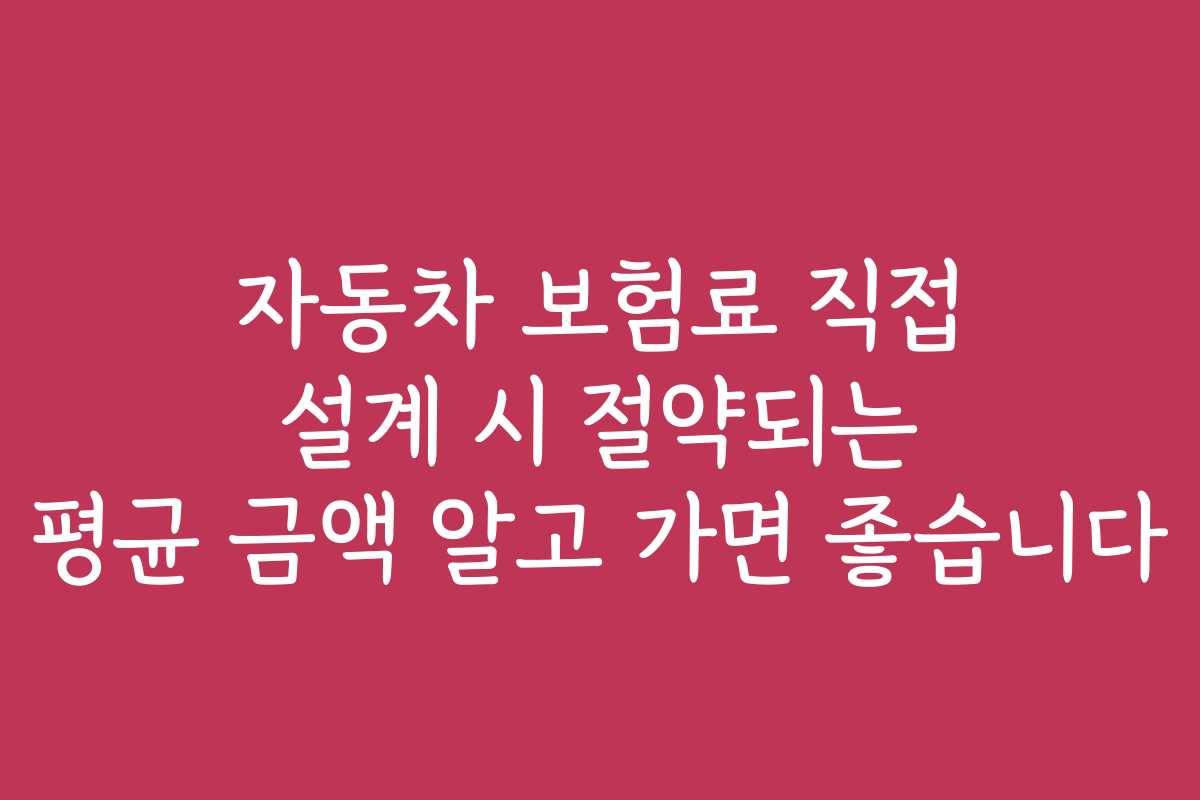 자동차 보험료 직접 설계 시 절약되는 평균 금액 알고 가면 좋습니다