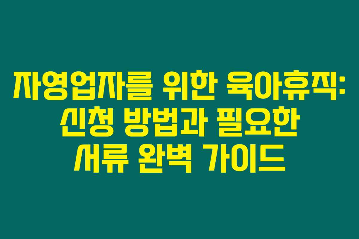 자영업자를 위한 육아휴직: 신청 방법과 필요한 서류 완벽 가이드
