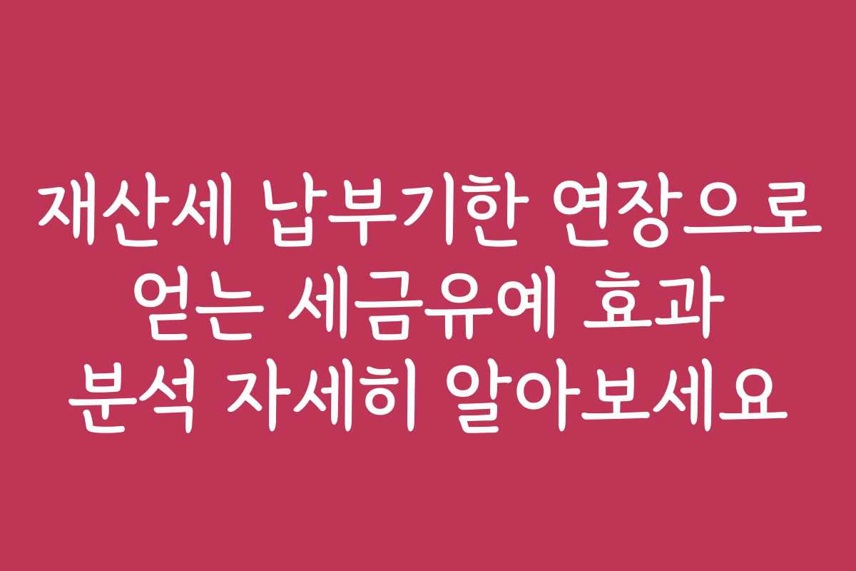 재산세 납부기한 연장으로 얻는 세금유예 효과 분석 자세히 알아보세요
