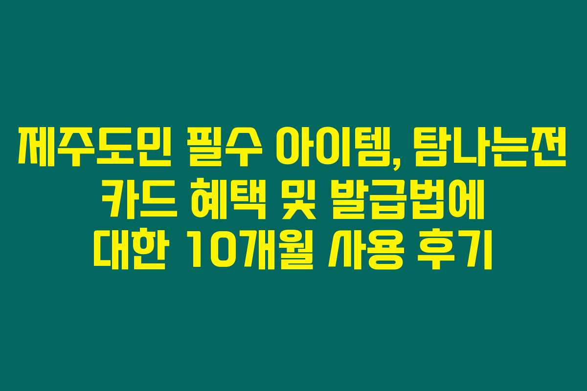 제가 직접 경험해본 결과로는, 제주도민이라면 꼭 알아야 할 탐나는전 카드의 다양한 혜택과 발급 방법에 대해 설명드릴게요. 이 카드는 제주도 내에서 유용하게 사용할 수 있는 지역화폐로, 현명한 소비를 도와줍니다. 아래를 읽어보시면 탐나는전 카드의 장점과 실제 사용 후기를 통해 더욱 유용한 정보를 얻으실 수 있을 거에요.