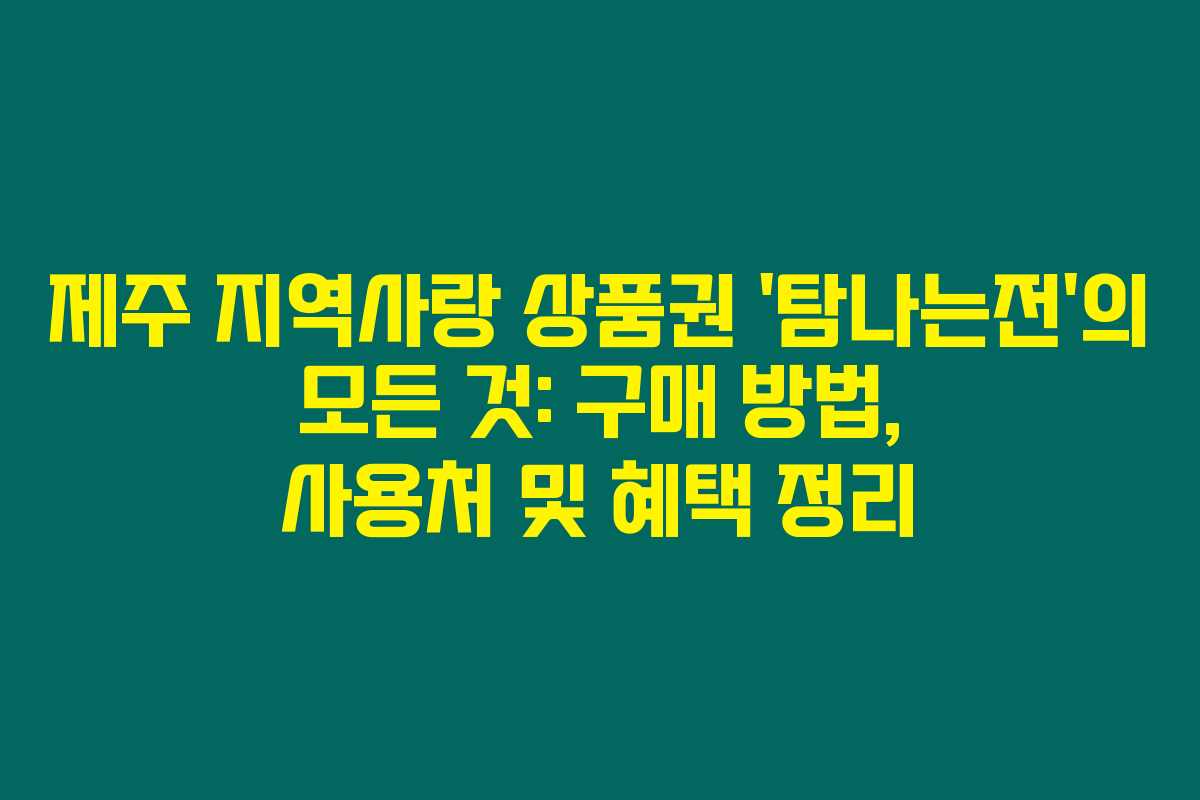 제가 직접 리서치한 바로는, 제주 지역사랑 상품권 ‘탐나는전’은 제주도에서만 사용할 수 있는 특별한 지역화폐로, 도민뿐만 아니라 관광객에게도 많은 혜택을 제공합니다. 2025년에도 이 상품권은 제주 경제 활성화에 기여할 예정이며, 아래를 읽어보시면 구매 방법, 사용처 및 다양한 혜택에 대한 정보를 상세히 알아보실 수 있습니다.