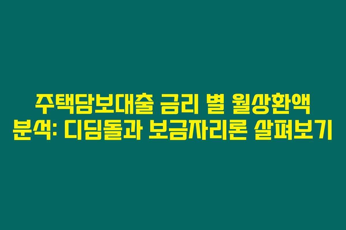 제가 직접 경험해본 결과로는 주택담보대출 금리를 이해하는 것이 매우 중요합니다. 현재 금리가 상승하는 상황에서 디딤돌과 보금자리론을 통한 대출이자 계산에 대해 궁금증이 많은 분들이 많을 텐데요. 아래를 읽어보시면 대출 금리에 따른 월상환액을 정확히 계산해 보고, 각 상품의 특징과 상환 방식에 대한 이해를 돕는 정보를 확인할 수 있을 것입니다.