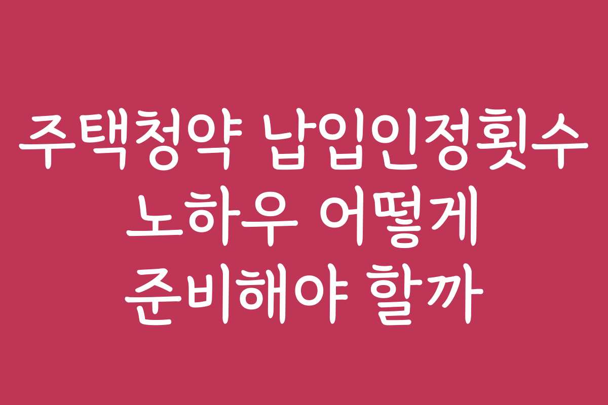 주택청약 납입인정횟수를 위한 효과적인 준비 방법은 무엇일까?