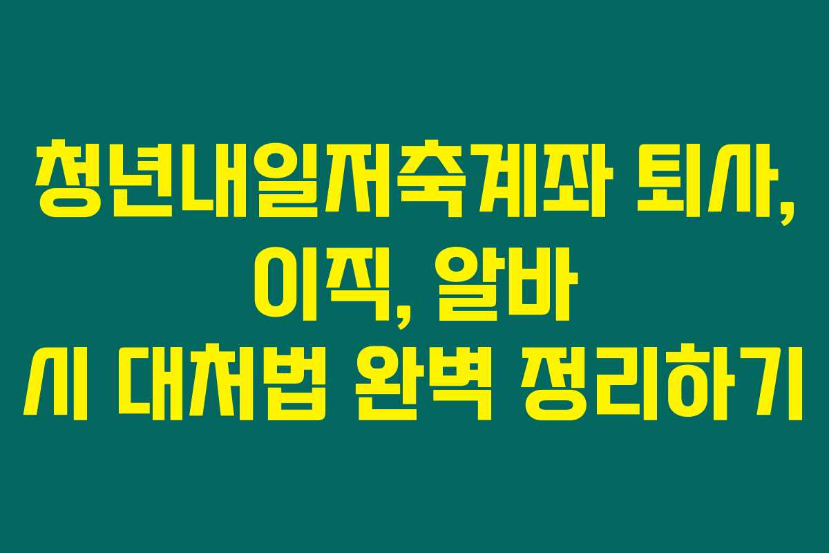 제가 직접 경험해본 결과로는, 청년내일저축계좌는 청년들에게 큰 도움이 되는 정책이지만, 퇴사, 이직, 알바와 같은 상황에서는 제대로 대처하지 않으면 오히려 소중한 자금을 잃을 위험이 있습니다. 아래를 읽어보시면 상황별 대처법과 유용한 정보에 대해 알아보실 수 있습니다.