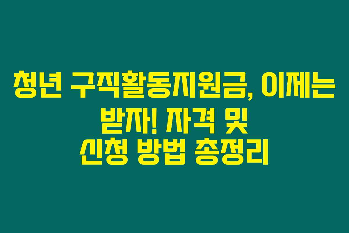 제가 직접 알아본 바로는, 청년 구직활동지원금은 현재 청년들이 느끼는 경제적 부담을 덜어주기 위한 훌륭한 지원 프로그램입니다. 많은 청년들이 이 기회를 통해 구직활동에 더욱 집중할 수 있게 되면 좋겠다고 생각해요. 아래를 읽어보시면 자격 요건과 신청 방법에 대해 상세히 설명드릴게요.