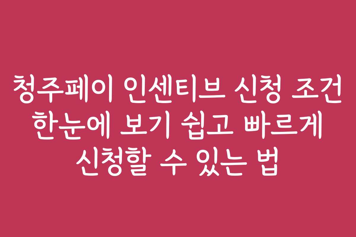 핵심 키워드: 청주페이 인센티브, 신청 조건, 빠른 신청 방법, 지역 경제, 주민등록증, 사업자 등록증, 온라인 신청, 캐시백, 할인 쿠폰, 이벤트, 청주 지역