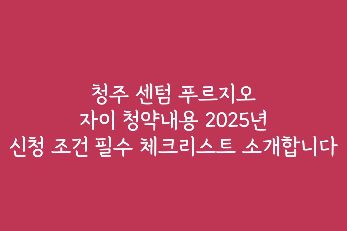 핵심키워드: 청주 센텀 푸르지오 자이 청약, 신청 조건, 체크리스트, 주택 청약, 청약통장, 청약 가점, 주택 소유, 신청 마감일, 서류 준비, 기억해야 할 사항