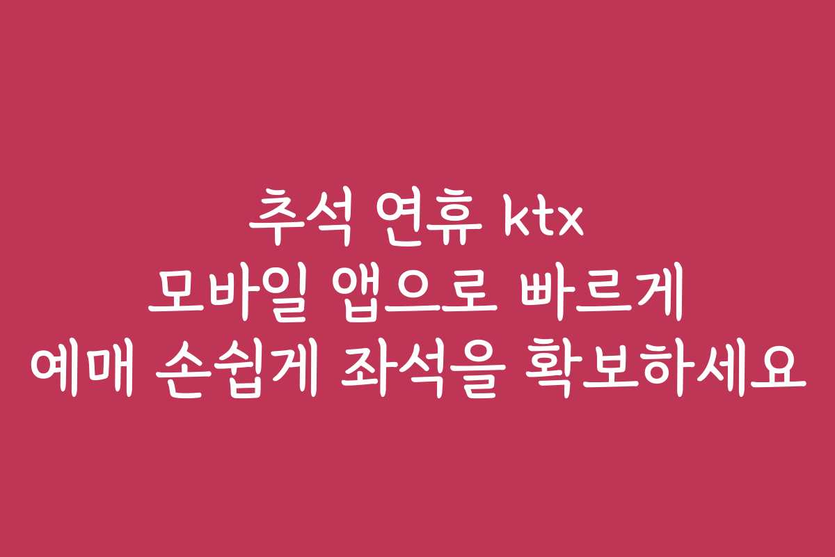 추석 연휴, 가족과의 만남을 계획하고 계신가요? 바쁜 일상 속에서 KTX 예매가 번거롭게 느껴지실 수 있습니다. 이제 모바일 앱을 통해 손쉽게 좌석을 확보하는 방법을 알려드립니다. 이 글에서는 추석 연휴 KTX 모바일 앱의 장점, 예매 과정 및 주의할 사항들을 알아보겠습니다.