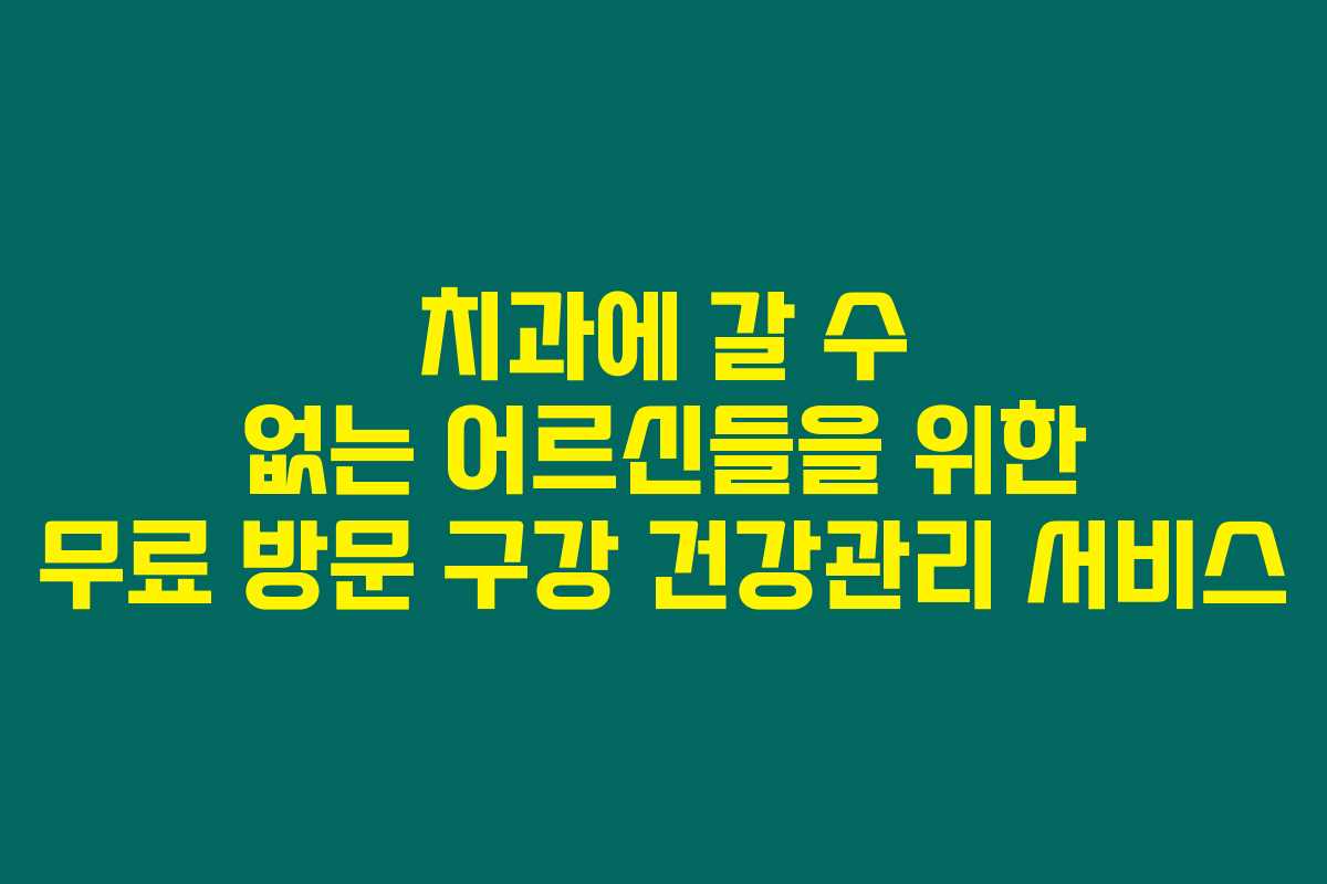 제가 직접 리서치한 바로는, 많은 어르신들이 치과에 가고 싶지만 이동이 어렵고 여러 가지 이유로 인해 구강 건강 관리를 미루곤 하십니다. 이런 문제를 해결할 수 있는 무료 방문 구강 건강관리 서비스가 시작된다는 소식이 있어요. 이 기회에 어르신들이 건강한 치아를 유지할 수 있도록 많은 정보를 제공하고자 합니다. 아래를 읽어보시면 이 서비스의 내용을 자세히 알 수 있습니다.