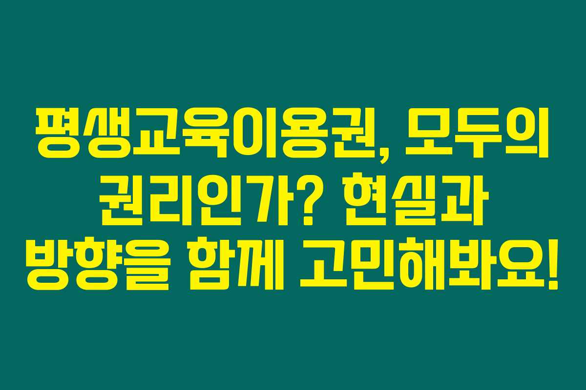 평생학습은 개인의 발전을 넘어서 사회 전체의 성장을 도모합니다. 여기서 중요한 것은 누구나 언제 어디서든 교육을 받을 수 있는 환경을 만드는 것입니다. 그래서 평생교육이용권 제도가 진정한 평생교육으로 작용하려면, 현재의 문제를 병치하고 개선하는 노력이 필요합니다. 앞으로 모두에게 배움의 기회를 제공하는 사회가 되기를 진심으로 바라요.