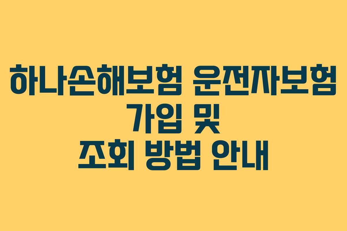 하나손해보험 운전자보험 가입 및 조회 방법 안내
