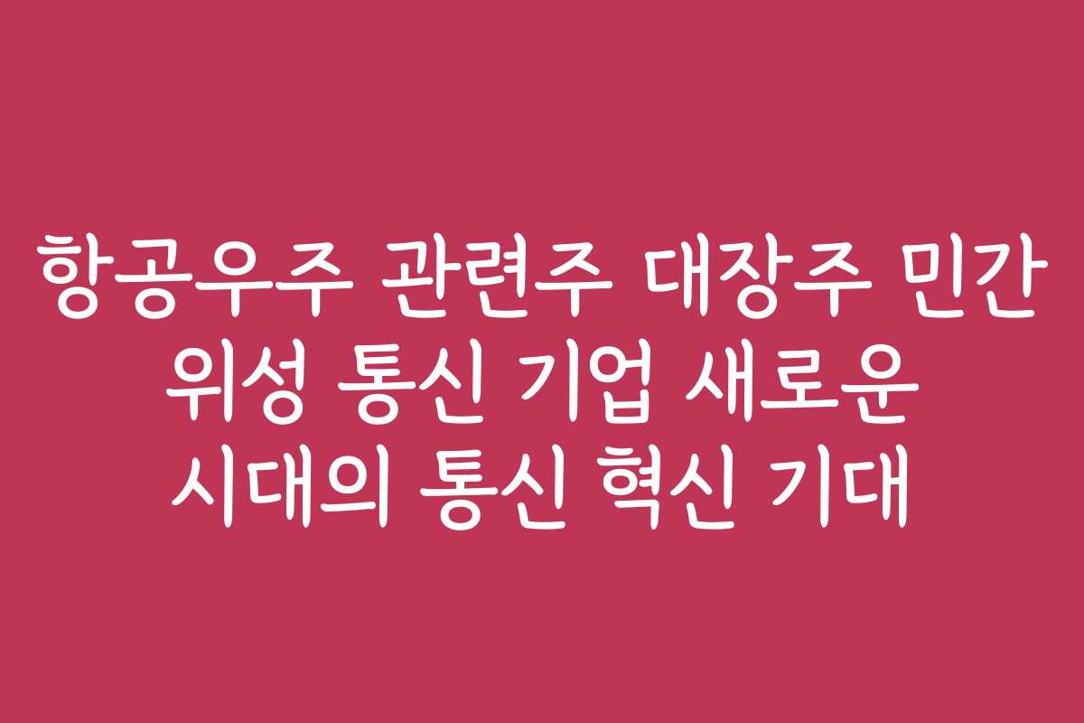 항공우주 관련주 대장주 민간 위성 통신 기업 새로운 시대의 통신 혁신 기대